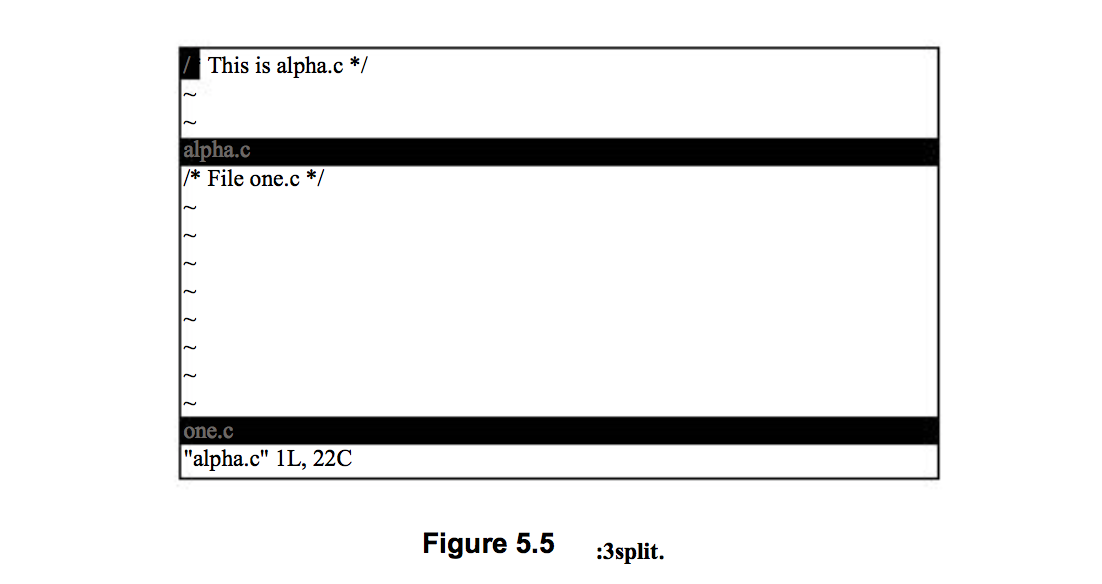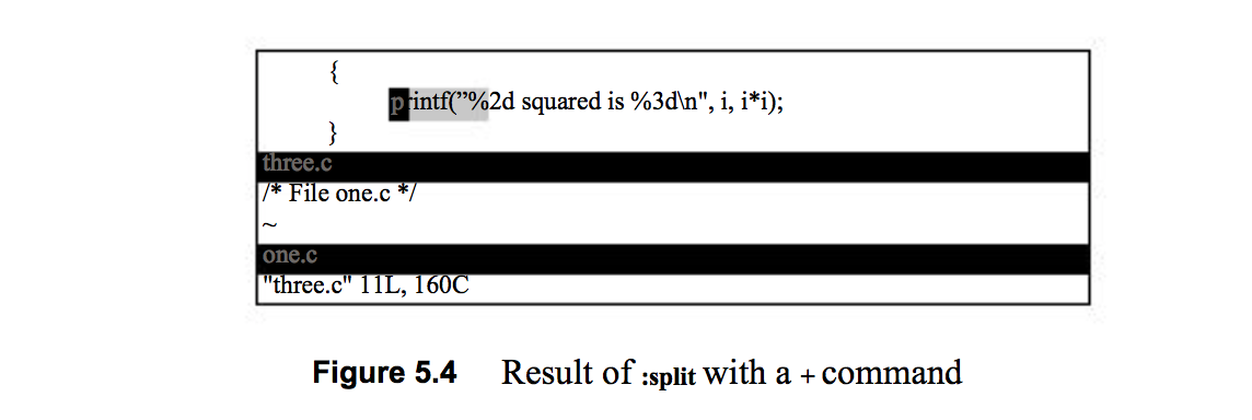 这个命令把屏幕分成两个窗口(把光标保留在最上面),像Figure 5.1展示的那样。