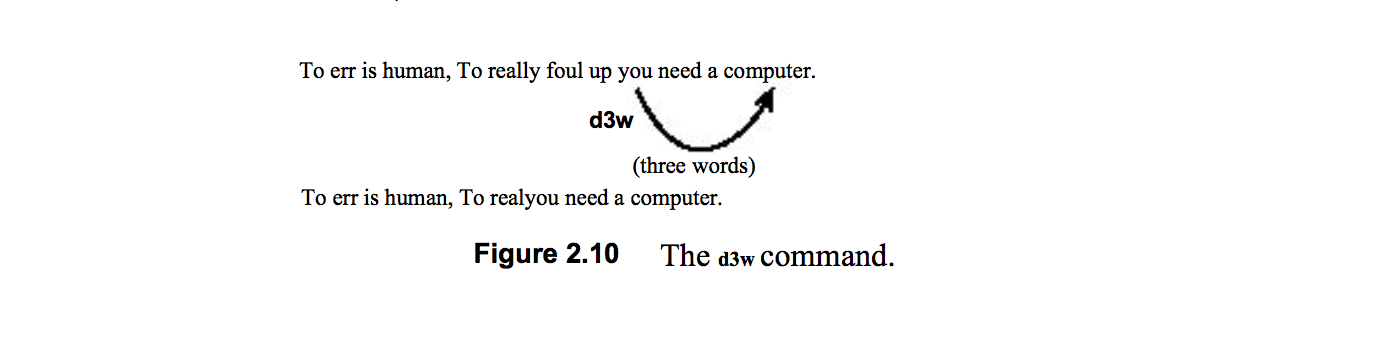 你可以把这两个模式组合起来(例如,3d2w)。此命令删除二个单词,重复三次,总共6个单词。