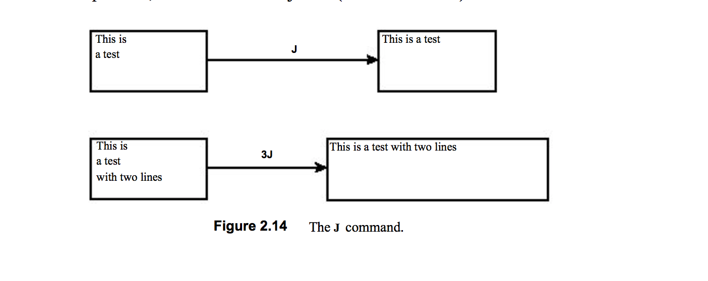 J命令连接当前行和下一行。一个空格会被添加在第一行的行尾来分割连接的二行。如果指定了数量,指定数量的行会被连接