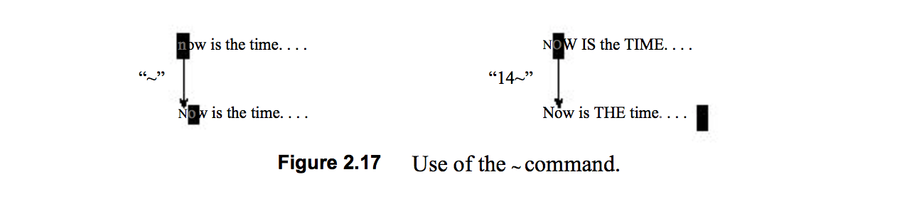 改变字符的大小写。他把大写字符变为小写,反之亦然。如果指定了数量,指定数量的字符会被改变。Figure 2.17 包含了例子。